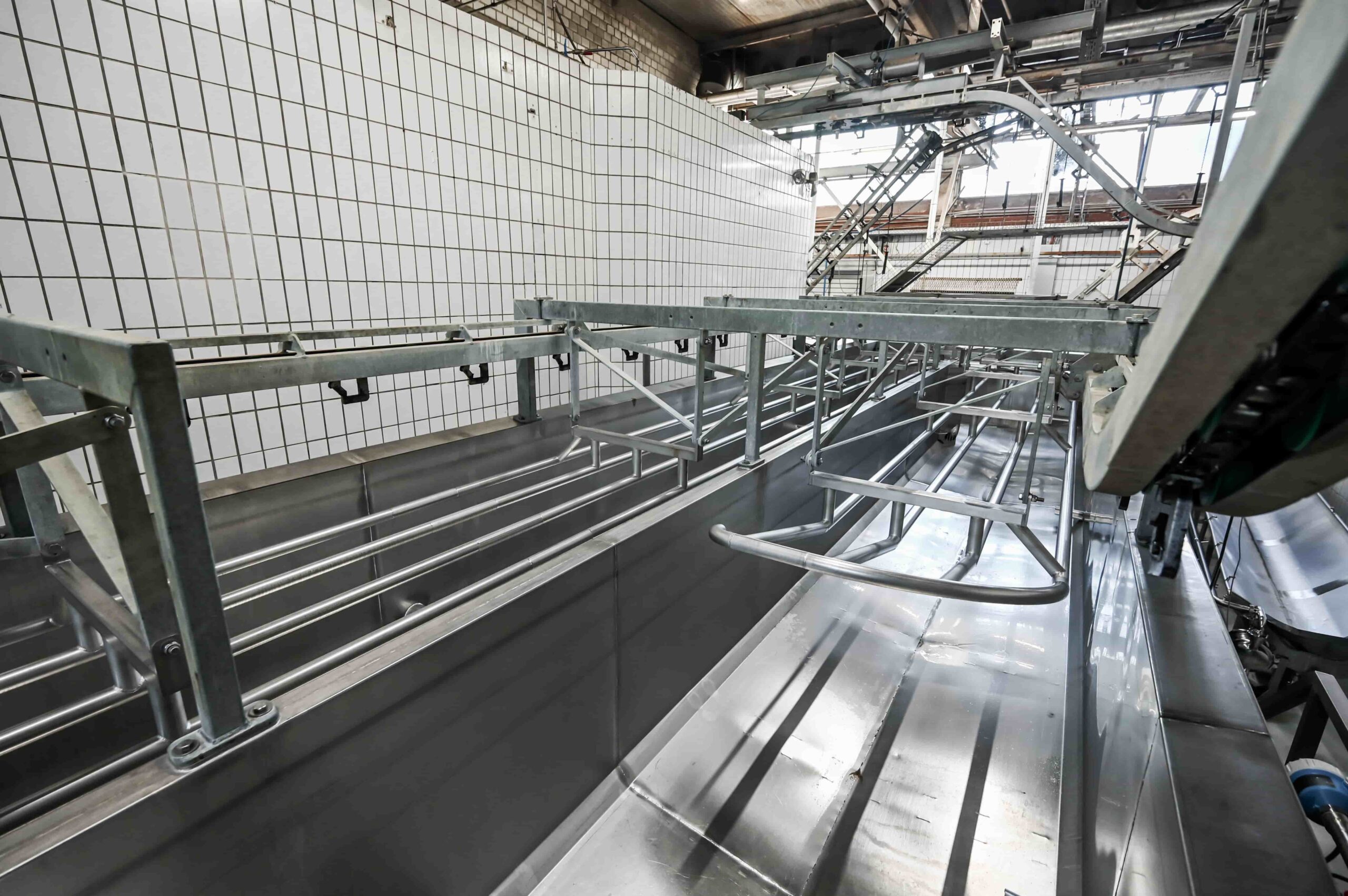 De broeibak is een broeioplossing met een hoge mate van aanpasbaarheid, afhankelijk van de beschikbare ruimte en de gewenste capaciteit van het slachthuis. Met de broeibak kan de watertemperatuur zeer goed worden geregeld, wat resulteert in een constant broeiproces. De karkassen worden met een nauwkeurig bepaalde snelheid per transportband door de broeitank bewogen, waardoor ze precies de juiste broeitijd krijgen. Door het gebruik van roestvrij staal is de tank robuust en eenvoudig te reinigen.